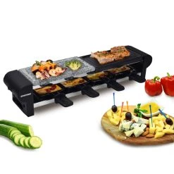 Null Raclett BBQ-Grill Für 8 Personen Mit 8 Steinplatte PP-Spateln Tischgrill Halb Antihaft-Platte