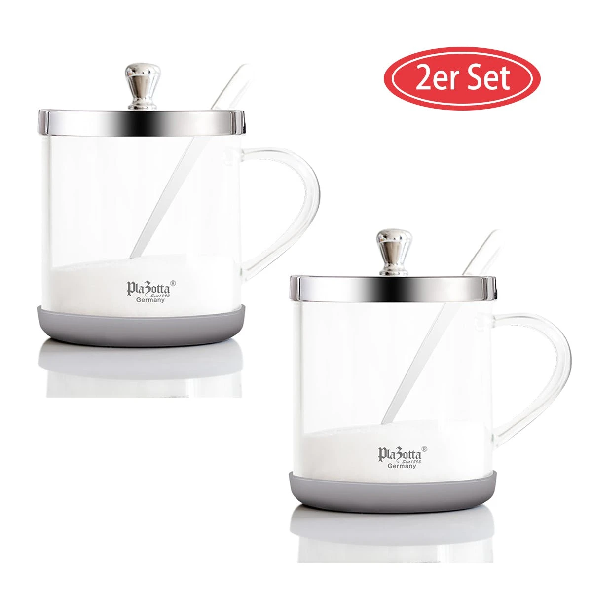 2x Ersatzstreuer Salz mit Kappe zu Menage 2-teilig Salz Pfeffer, aus Edelstahl 18/10, hochglänzend, mit schweren, glatten Glaseinsätzen