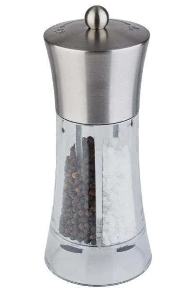 Mit dieser praktischen Salz – und Pfeffermühle sind Speisen optimal nachzuwürzen. Materialbedingt sind Mahlwerke aus Keramik nicht anfällig für feuchtigkeitsbedingten Rost oder Korrosion. Edelstahl und Acryl sind die Grundstoffe der Herstellung. Edelstahl ist korrosionsbeständig, temperaturbeständig, langlebig und zudem hygienisch. Acrylglas ist eine transparente Kunststoffscheibe. Die 2 in1 Salz- und Pfeffermühle ist nicht spülmaschinengeeignet. Es empfiehlt sich ein Abwischen mit einem warmen, feuchten Tuch.