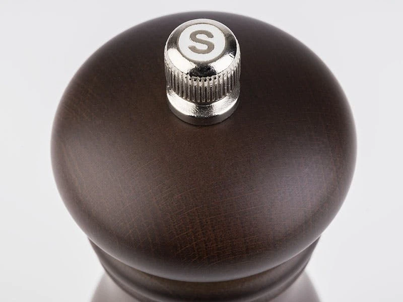 deutsches Buchenholz, dunkel, Mahlwerk aus Edelstahl, Mahlgrad stufenlos einstellbar, Schaft aus Edelstahl