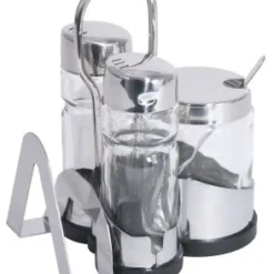 Gestell Edelstahl 18/0 mit schwarzem Kunststoff- boden.