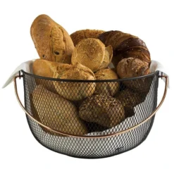 Lebensmittel kommen in diesen Körben besonders gut zur Geltung und werden durch die Gitterstruktur luftig verwahrt, wodurch sie sich besonders gut für Buffets oder den Esstisch eignen. Der Korb ist perfekt geeignet als Obstkorb, Gemüse- oder Brotkorb und besteht aus Metall und ist daher besonders robust und pflegeleicht. Das Material hat eine angenehme Haptik und wirkt durch die Oberfläche besonders edel. Durch die Materialeigenschaften des Metalls ist der Gitterkorb besonders pflegeleicht. Man kann ihn einfach und schnell mit einem feuchten Tuch abwischen, sie ist aber auch spülmaschinengeeignet (nicht mikrowellengeeignet).
