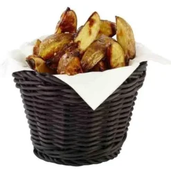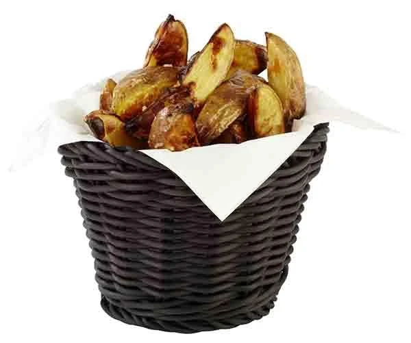 Dieser Korb eignet sich hervorragend, um kleine Lebensmittel direkt am Tisch der Gäste zu platzieren. Sowohl Obst als auch frische Brötchen oder auch kleine Marmeladen werden anschaulich und geschmackvoll präsentiert. Dieser aus Polypropylen geflochtene Korb zeichnet sich durch seine Härte und Wärmebeständigkeit aus. Polypropylen ist ein thermoplastischer Kunststoff. Er ist spülmaschinengeeignet, bruchsicher und stapelbar. Bei sachgerechtem Gebrauch benötigen diese Körbe in der Regel keine besondere Pflege. Leichte Verschmutzungen werden mit einem feuchtem Tuch oder Schwamm gereinigt. Bei stärkeren Verschmutzungen kann dem Wasser ein schonender Haushalts- bzw. Neutralreiniger beigegeben werden.