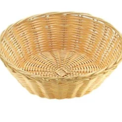 Dieser hellbraune, runde Korb eignet sich hervorragend, um kleine Lebensmittel direkt am Tisch der Gäste zu platzieren. Sowohl Obst als auch frische Brötchen oder auch kleine Marmeladen werden anschaulich und geschmackvoll präsentiert. Dieser aus Polypropylen geflochtene Korb zeichnet sich durch seine Härte und Wärmebeständigkeit aus. Polypropylen ist ein thermoplastischer Kunststoff. Er ist spülmaschinengeeignet, bruchsicher und stapelbar. Bei sachgerechtem Gebrauch benötigen diese Körbe in der Regel keine besondere Pflege. Leichte Verschmutzungen werden mit einem feuchtem Tuch oder Schwamm gereinigt. Bei stärkeren Verschmutzungen kann dem Wasser ein schonender Haushalts- bzw. Neutralreiniger beigegeben werden.
