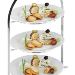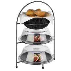 Der perfekte Helfer am Buffet. Teller können in der Küche angerichtet und auf dem Gestell ansprechend den Gästen serviert und leicht zugänglich gemacht werden. Auf dieser Etagere finden bis zu drei Teller Platz. Das Herstellungsmaterial ist ein robustes Metall. Es empfiehlt sich, das Gestell mit einem warmen feuchten Tuch abzuwischen. So wird es von möglichen Lebensmittelresten befreit und das Material bleibt gepflegt.