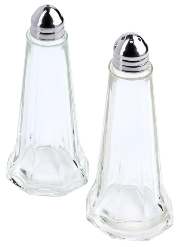 Salz-/Pfefferstreuer Leuchtturm, aus klarem Pressglas, mit verchromten Messingkappen