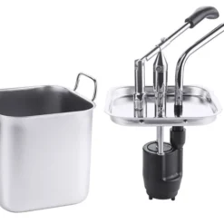 Dispenser, eckig, mit Pumpaufsatz 1312, leicht zerlegbar, auf verschließbaren Dosen aus Polypropylen, lebensmittelgeeignet