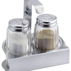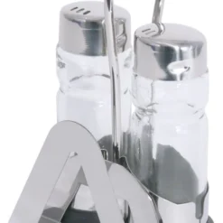 Menage Salz/Pfeffer, Senf, aus Edelstahl 18/0, hochglänzend, mit Pressglaseinsätzen
