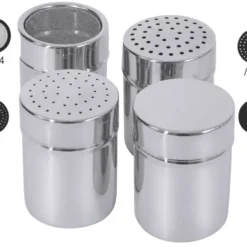Gewürzdose/Streuer mit 4 mm Lochung, aus Edelstahl 18/10, hochglänzend, Deckel mit Bajonettverschluss, mit Kunststoffkappe für Aroma-, Transport- und Feuchteschutz (ausgenommen Gewürzdose 1424/005)