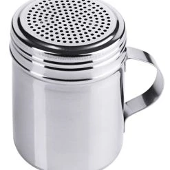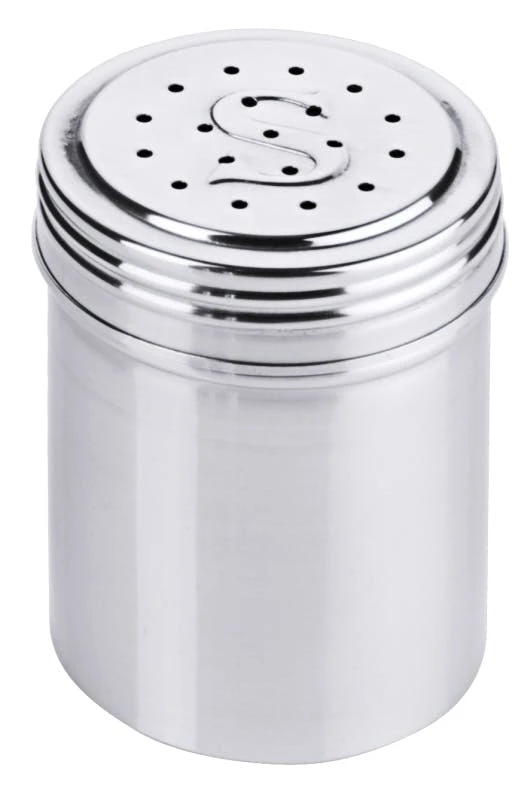 Streuer mit Schraubdeckel mit Griff, aus Edelstahl, hochglänzend, mit dichter 2 mm-Lochung, für Zucker, Salz, Gewürze, schwere Qualität