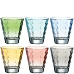 Mit dem exklusiven Trinkglas aus der Serie OPTIC genießen Sie Ihr Getränk noch mehr. Der violette Lack wirkt modern und hochwertig. Dieses konisch geformte Trinkglas ist ein absolutes Must-Have. Gestalten Sie sich das tägliche Leben ganz nach Ihrem Geschmack und belohnen Sie sich mit dem, was Ihnen gefällt – mit LEONARDO. Noch mehr Farbe bringt COLORI in Ihr Zuhause. COLORI ist das Zeichen von LEONARDO für veredelte Glasserien mit Hydrolack. Die moderne und lichtechte Hydroglasur wurde speziell für den Einsatz auf Gläsern und Tafelgeschirr entwickelt und wird ausschließlich in Deutschland produziert. Profitieren Sie von der hohen Widerstandsfähigkeit der COLORI Produkte im Alltag! Das Trinkglas der Serie OPTIC ist zudem spülmaschinengeeignet. Hier erhalten Sie 6 farblich sortierte Trinkgläser. Am besten nicht länger warten! Kommen auch Sie in den Genuss dieses wunderschönen violetten Trinkglases! Auch als Geschenk eine ausgezeichnete Wahl!