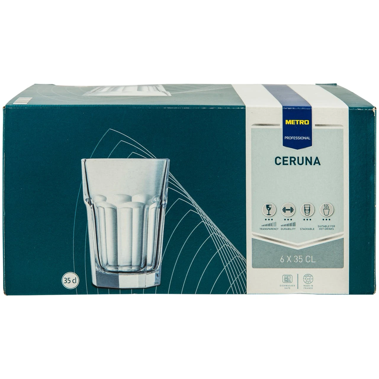 Das METRO Professional Trinkglas Ceruna verfügt über eine Füllmenge von 35 cl. Das Produkt ist spülmaschinengeeignet. Jede Verpackungseinheit besteht aus 6 Gläsern.