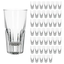 48er Set Likörgläser AROSA von Bormioli Rocco, 160 ml, Whiskybecher, kleines Longdrinkglas, transparentes Glas mit Streifenrelief, kristallklar, spülmaschinengeeignet, Gastronomie, Bar