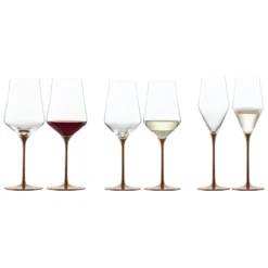 Die tollen Weinkelche der Glas-Serie FOR2DAY sind formschön und elegant zugleich. Die WeinglĂ€ser mit einem FĂŒllvolumen von 330 ml werden bevorzugt fĂŒr das Servieren von RosĂ©- und WeiĂweinen verwendet. Der Grund: in dem kleineren Weinglas kann sich der meist zarte Duft eines WeiĂweines oder eines RosĂ©s besser entfalten. Die flĂŒchtigen Aromen werden in der bauchigen Form leichter wahrgenommen. WeiĂwein und RosĂ© schmecken gekĂŒhlt am besten, weshalb man die Kelche stets nur am Stiel anfassen sollte.