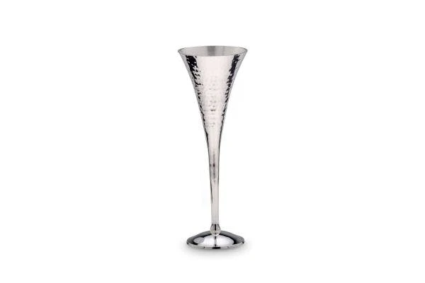 Kleiner Becher in gehÀmmerter Optik aus versilbertem Messing. Der Becher hat eine Höhe von 5,5 cm und einen Durchmesser von 5,5 cm.