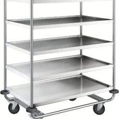Blanco Servierwagen SW 10 x 6-5 Besondere Merkmale: > schallgedämmt > stabiler geschlossener Rundrohrrahmen > verschweißte Borde > eingerollte Kanten stabilisieren und sind verletzungssicher > optionale Erweiterungen möglich: Besteckaufsatz, Ablagebord,