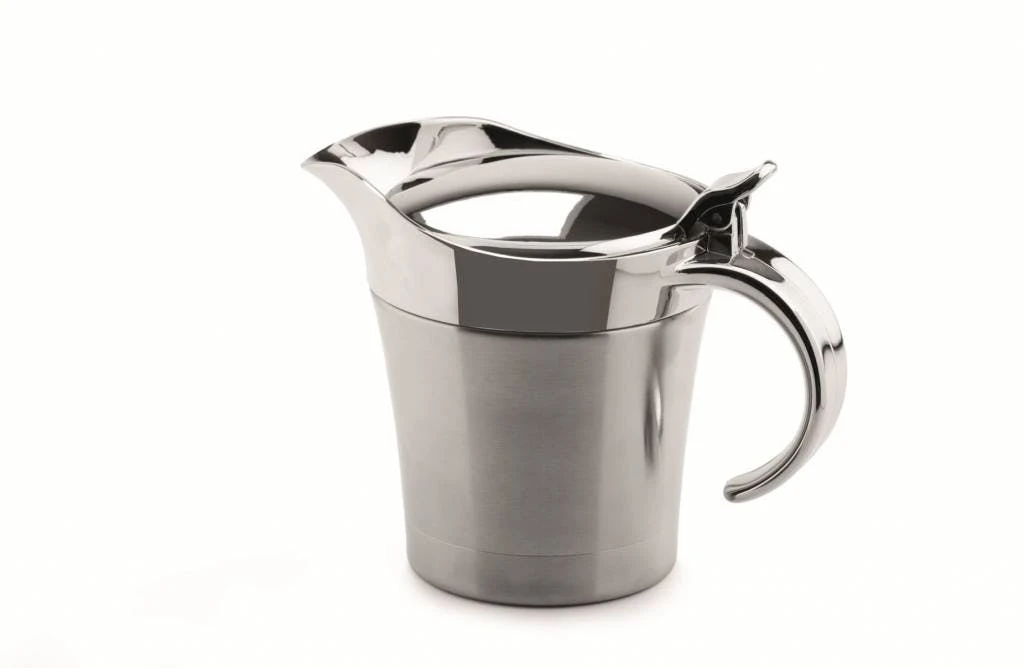Hochwertige doppelwandige Ausführung inkl. Deckel, hält Saucen lange Zeit warm und frisch.