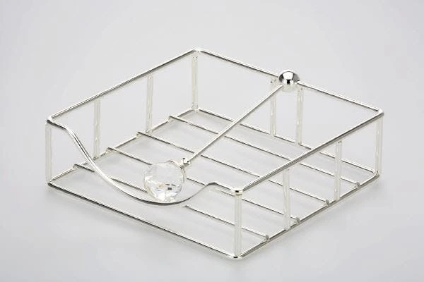 versilberter Serviettenhalter. Der Serviettenhalter ist anlaufgeschützt und eine Größe von 19 x 19 x 6 cm.