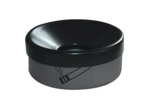 Sicherheits-Tischascher, aus Stahl, Höhe x Durchmesser 40 x 90 mm, Korpus mit Pulverbeschichtung in graphit, Aschereinsatz Inhalt 0,2 l, Kopfteil schwarz, Kopfteil abnehmbar.
