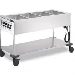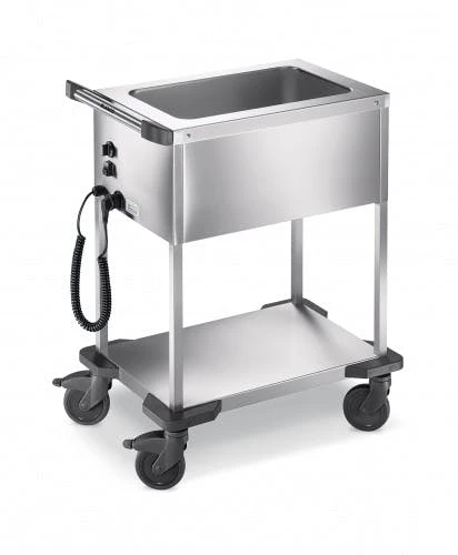 Typ: SAW-3, Ausführung: 3 Einzelbecken mit, Temperaturregler, nass und, trocken beheizbar, 4 Lenkrollen: ø 125mm, 2 fest-, stellbar, Kunststoff, rostfrei, Material: CNS 18/10, Anschlusswert: 230V 2,