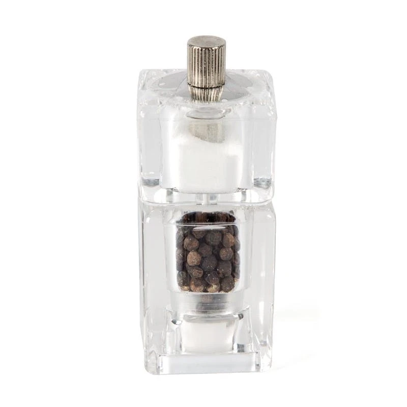 Kombination aus Salzstreuer und Pfeffermühle aus strapazierfähigem Acryl hergestellt. Einstellbarer Keramikmechanismus für grobes und feines Mahlen.