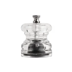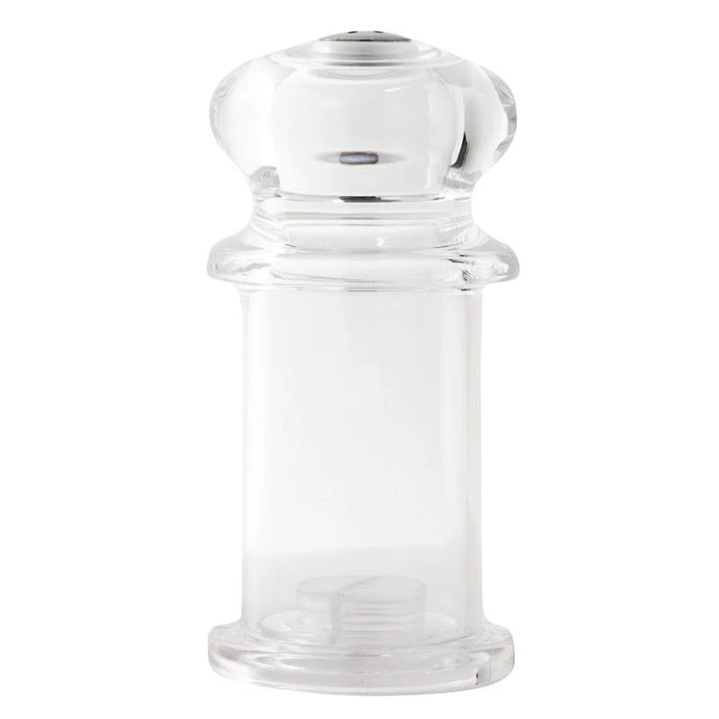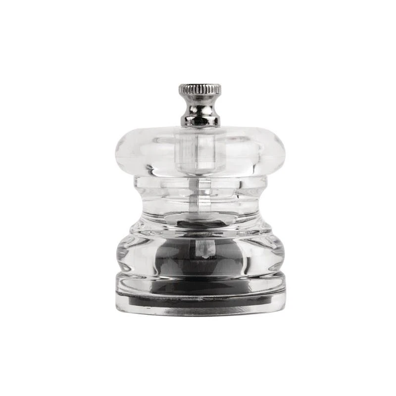 Klares Acryl, Mühle- und Streuerset in Miniaturformat. Einstellbarer Keramikmechanismus für grobes oder feines Mahlen. Ideal für Tablettservice.