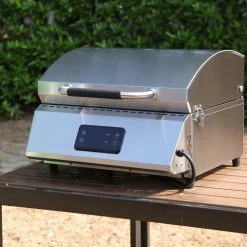 Der Tarrington House Elektrotischgrill in Silber hat die Maße von 43 x 45 x 34 cm (B x L x H). Er ist elektrisch und aus Edelstahl gefertigt. Das Produkt verfügt über eine abnehmbare Fettkammer mit einem 7500 BTU Hauptbrenner aus Edelstahl (2.2 kW), einen Deckel mit hitzebeständigem Griff und einen 33 x 39.5 cm Edelstahlgrillrost. Dank seiner Größe kann den Grill einfach transportiert werden.