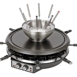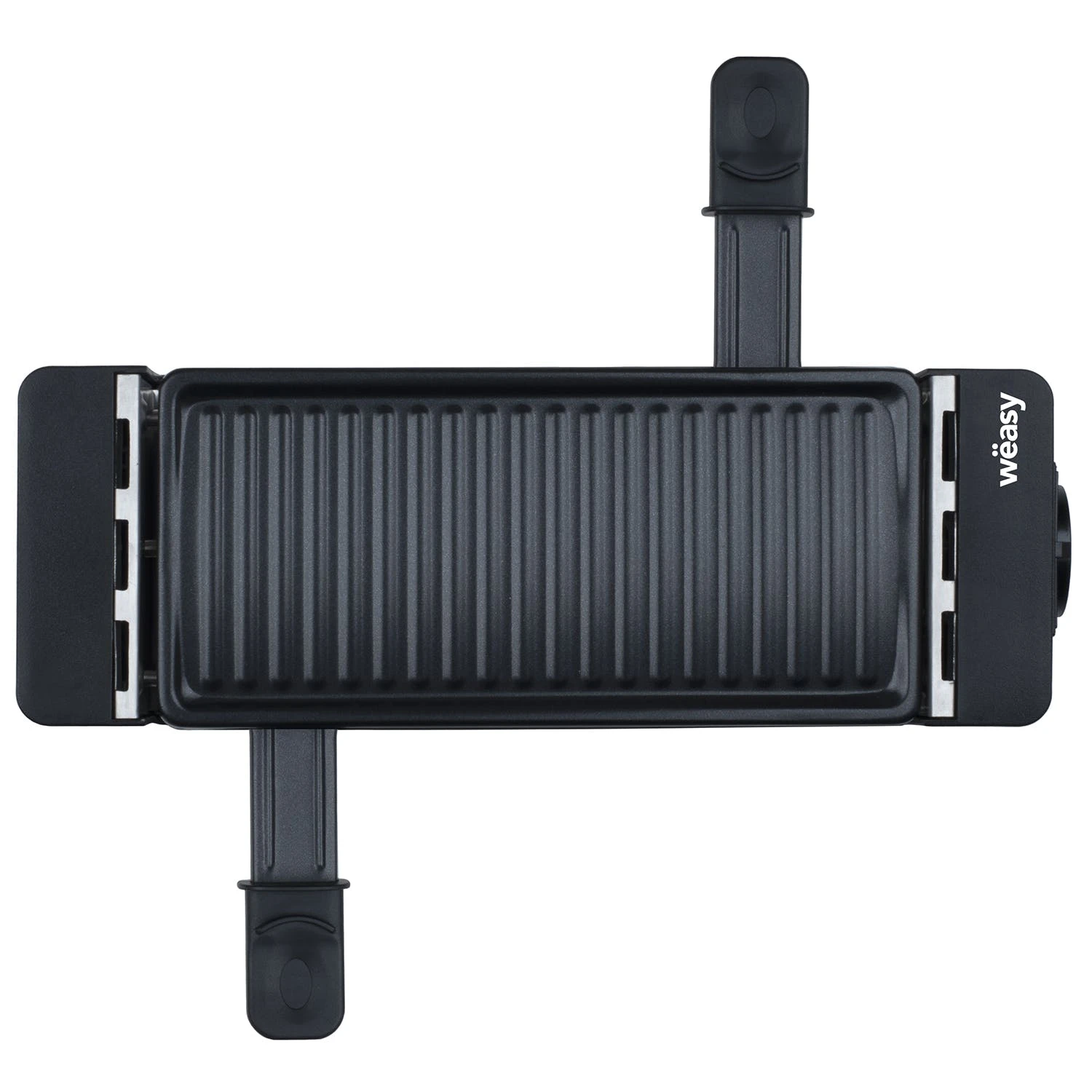 Der Tarrington House Raclette-Grill RG2081RE (2000 W) zum Grillen und Bräunen ist für bis zu acht Personen geeignet und verfügt über eine herausnehmbare Grillplatte aus Aluminium mit Antihaftbeschichtung (51 x 26 cm). Das Produkt punktet mit einem einstellbaren Temperaturregler, Umkehrbare Grill-/Griddleplatten. Im Lieferumfang befinden sich zudem acht Raclettepfännchen mit Antihaftbeschichtung und acht Racletteschaber aus Holz.