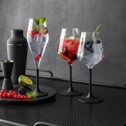 Die Gläser mit schwarzem Stiel und Boden passen perfekt zum Manufacture Rock-Porzellan und verleihen dem Tisch einen eleganten Look.