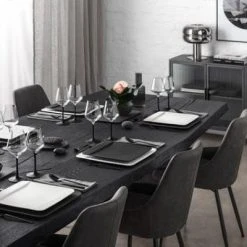 Die Gläser mit schwarzem Stiel und Boden passen perfekt zum Manufacture Rock-Porzellan und verleihen dem Tisch einen eleganten Look.